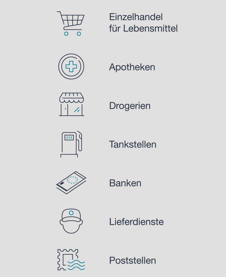- Weg zur Arbeit, Notbetreuung, Einkäufe etc. sind weiter möglich.