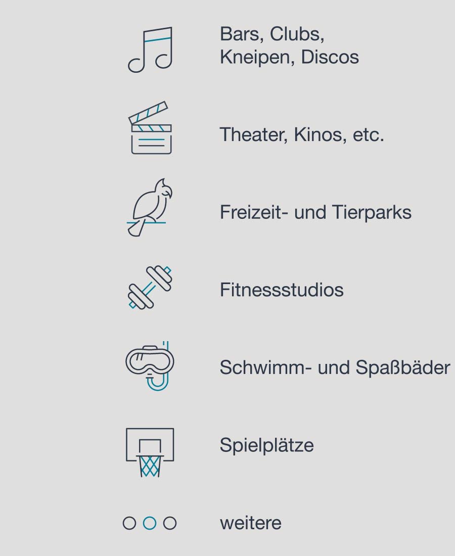 - Friseure, Tattoostudios, Kosmetikstudios, etc. werden geschlossen.