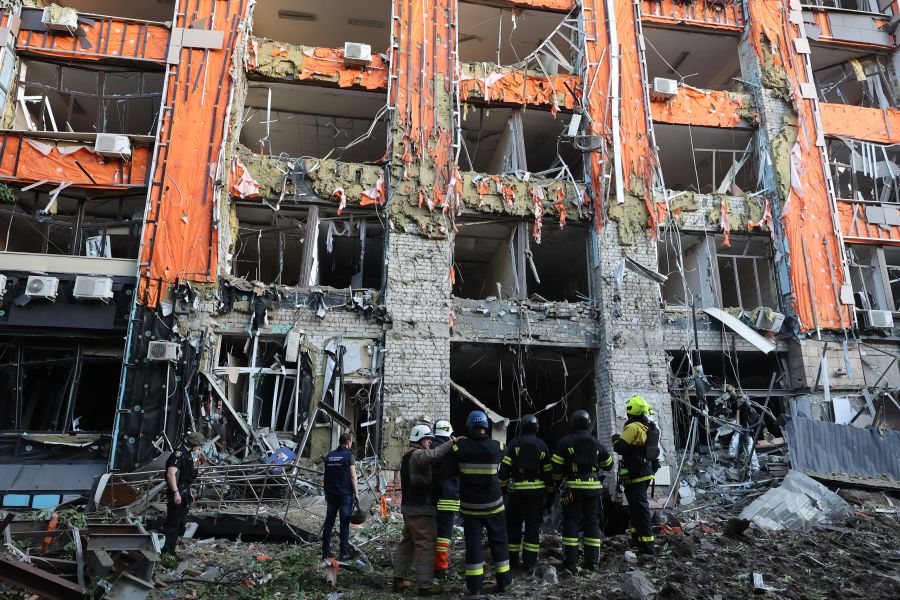 Russische Raketen haben dieses Bürogebäude im Zentrum Charkiws zerstört.